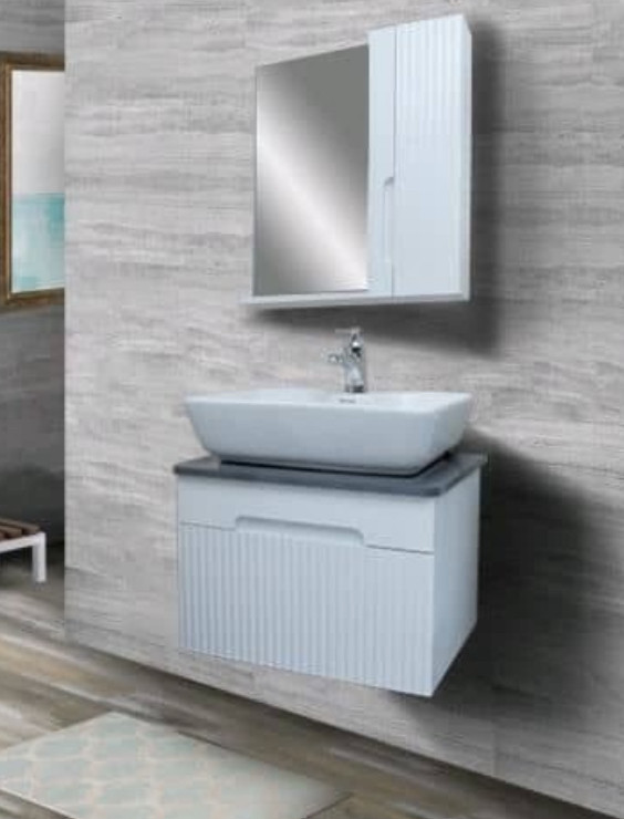 فول ست روشویی که شامل سنگ و کابین و ایینه و باکس است