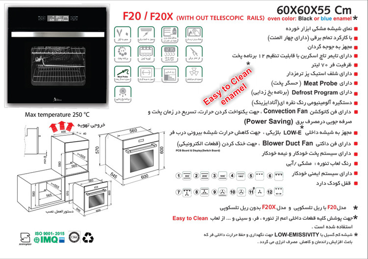| دارد | پوشش داخلی آسان تمیز شونده |