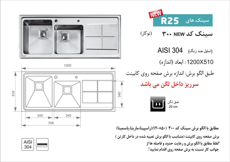 جنس سینک: استیل معمولی