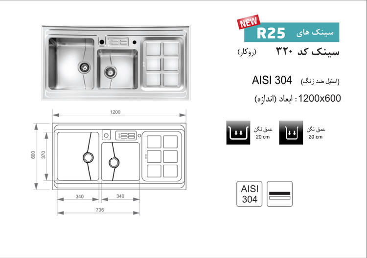 جنس سینک: استیل معمولی