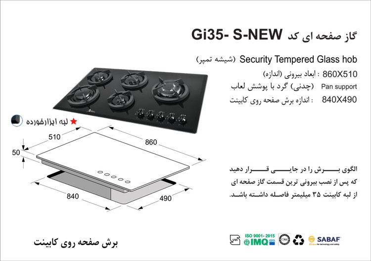 | ندارد | قابل نصب روی کابینت عرض 50 |