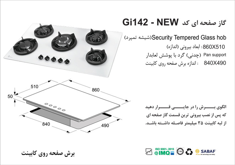 | ندارد | قابل نصب روی کابینت عرض 50 |