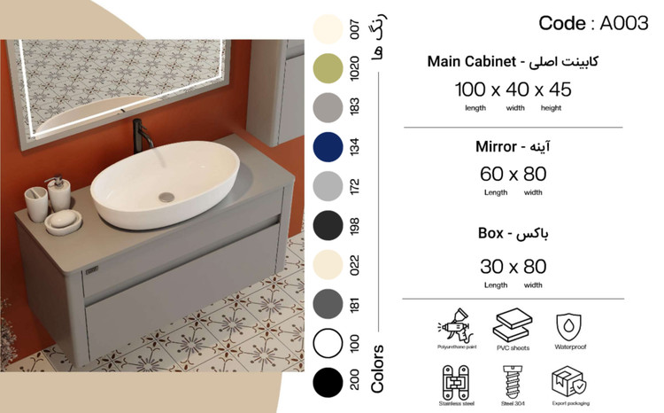 تمامی متریال استفاده شده در فول ست های روشویی ،ضد آب بوده