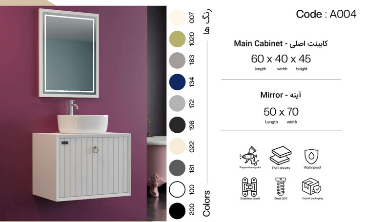 تمامی متریال استفاده شده در فول ست های روشویی ،ضد آب بوده