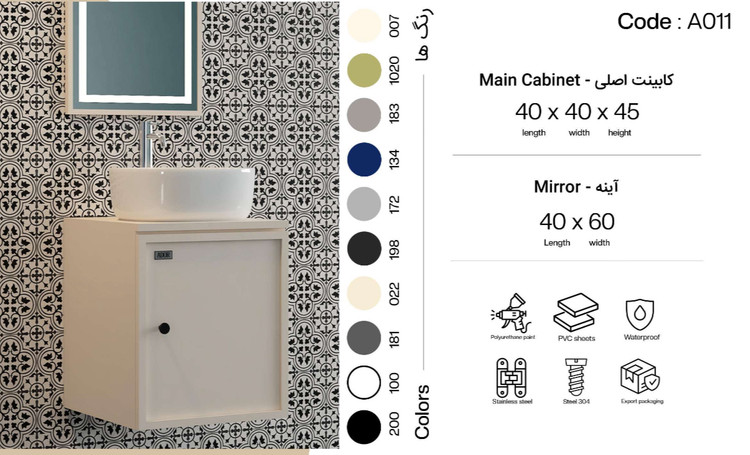 تمامی متریال استفاده شده در فول ست های روشویی ،ضد آب بوده