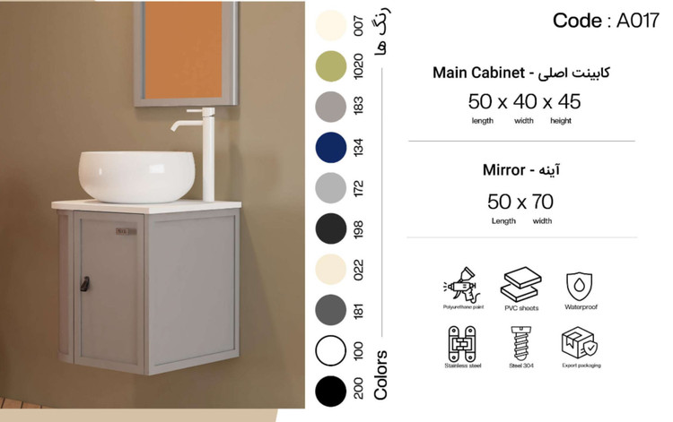 تمامی متریال استفاده شده در فول ست های روشویی ،ضد آب بوده