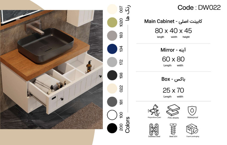 تمامی متریال استفاده شده در فول ست های روشویی ،ضد آب بوده