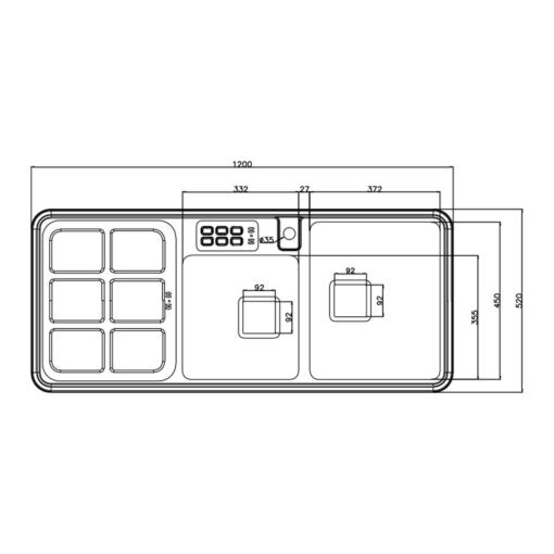 نوع سینک: توکار| عمق: 18 سانتی متر| ابعاد: 52*120 سانتی متر |